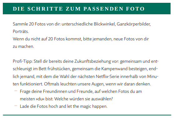 2. Mache dir bewusst, dass diese Form von Zurückweisung nichts mit dir als Person zu tun hat. Denn wie viel sagen wenige Fotos und Wörter über dich aus? Wenig – außer, welchem Klischee du am ehesten entsprichst. Doch wir sind so viel mehr als ein Klischee. Du bist so viel mehr als ein Klischee!