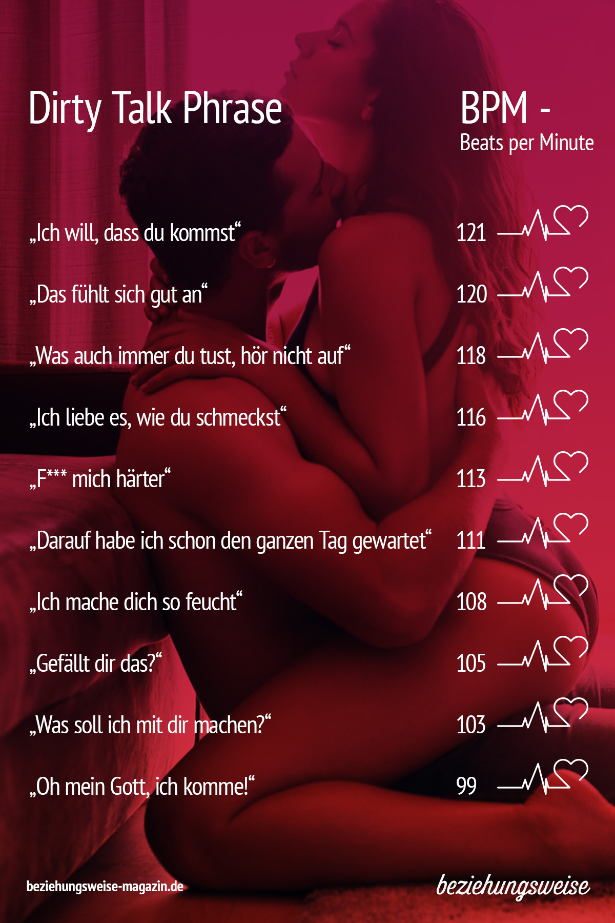 Die Top 10 Dirty Talk Phrasen von Männern und Frauen, die nicht nur euer Sexleben, sondern auch den Herzschlag eures Partners / eurer Partnerin so richtig in Fahrt bringen, haben wir für euch in zwei Grafiken zusammengefasst: