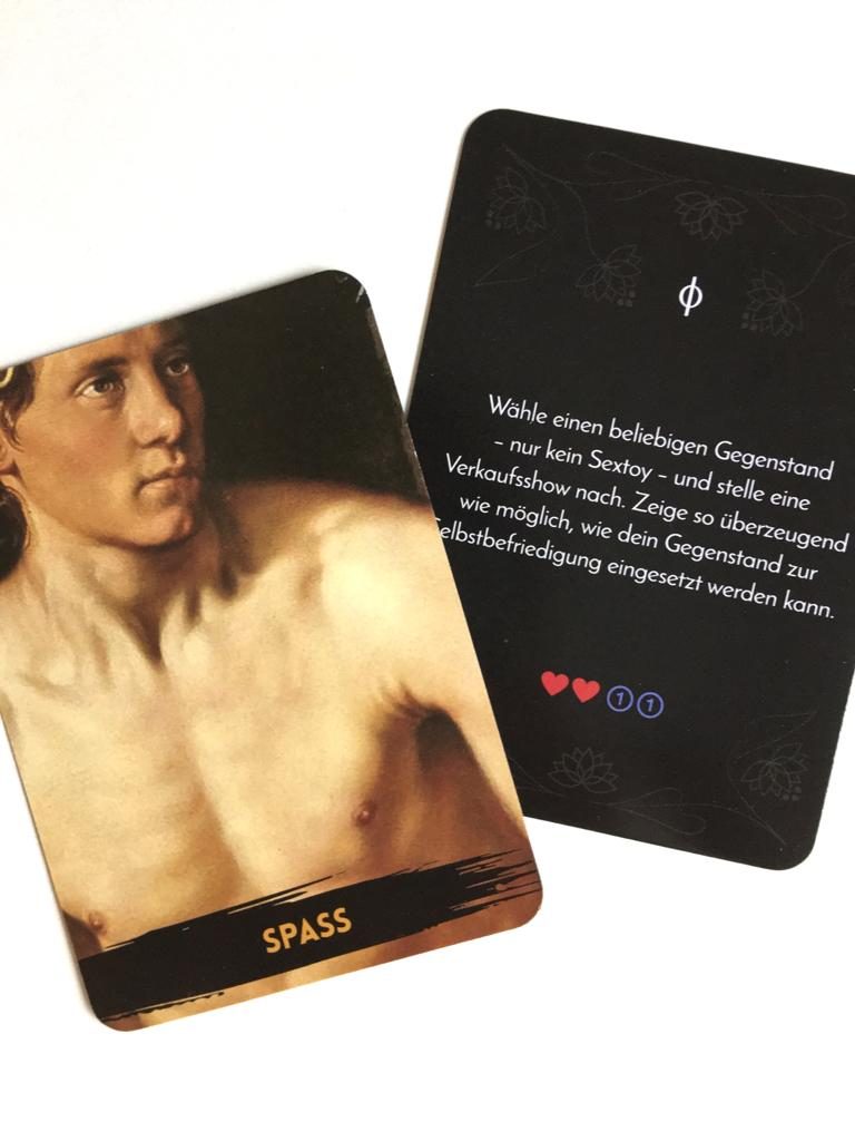 Empfehlung der Redaktion: Euch werden sicher Karten begegnen, die euch persönlich nicht so liegen oder für die ihr euch (noch) nicht bereit fühlt. Lasst euch davon nicht stressen, sondern nehmt einfach die nächste Karte. Es geht schließlich, dass ihr eine schöne Zeit verbringt und nicht darum die Spielregeln 1:1 zu erfüllen. Wir sind uns eh sicher, dass ihr immer bis zum Ende des Spiels kommt… 😉