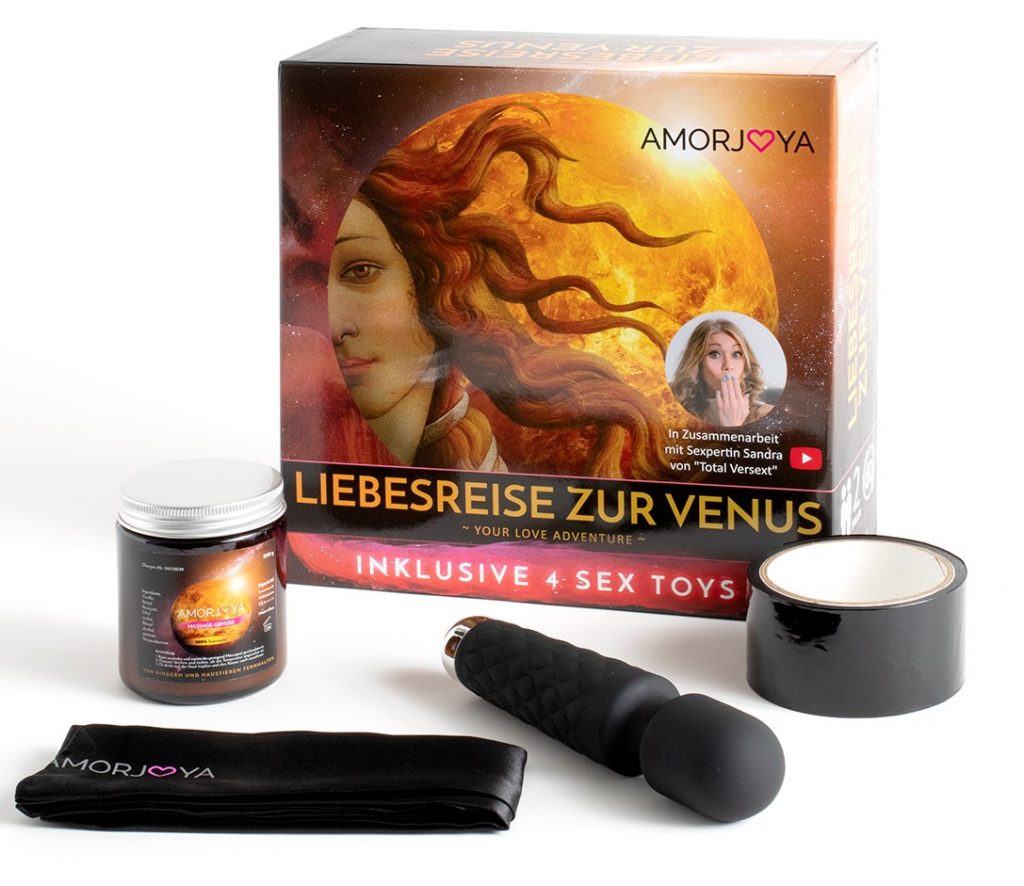 Genau das hat sich jetzt auch der Online-Händler Amorjoya gedacht und die Liebesreise zur Venus herausgebracht. Das Spiel sorgt mit über 200 Aufgaben für reichlich Gesprächsstoff und Gelegenheiten sich näher zu kommen. Das Besondere an diesem Spiel: Ihr spielt nicht gegeneinander, sondern miteinander. Desto mehr Hingabe und Leidenschaft ihr in die Erfüllung der Aufgaben legt, umso mehr Münzen sammelt ihr auf dem gemeinsamen Konto. Wichtig dabei: Beide Partner sollten aufgeschlossen sein, sich auf das Spiel einlassen und grundsätzlich Spaß am Experimentieren haben. Je mehr ihr euch aus eurer persönlichen Komfortzone herauswagt, desto mehr könnt ihr als Paar für euch mitnehmen.